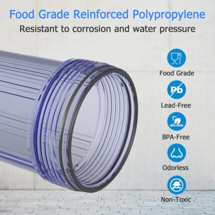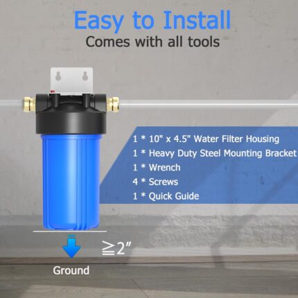 • 【Protects water appliances】This 10″x4.5″ whole house water filtration system protects your water pipes from rust and extends the lifespan of your water-related appliances by delivering clean water source without clogging.