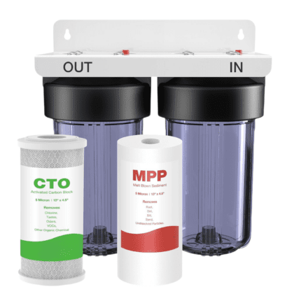 - 【Protects water appliances】This 10″x4.5″ whole house water filtration system protects your water pipes from rust and extends the lifespan of your water-related appliances by delivering clean water source without clogging.